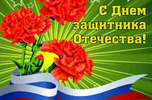 Примите самые искренние поздравления с Днем защитника Отечества! Желаем вам здоровья, благополучия, счастья Вашим близким и родным, уверенности в завтрашнем дне и светлых надежд на будущее, бодрости духа, творческого вдохновения и неиссякаемой энергии! Пусть трудности, встречающиеся на Вашем пути, будут всегда легко преодолимы. Крепкого здоровья, душевного тепла и праздничного настроения!