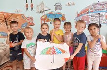 Коллективная аппликация в старшей группе "Дружба" на тему "Разноцветные зонтики" -