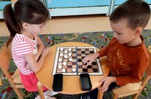 В нашем детском саду прошло соревнование по игре в шашки между ребятами подготовительной группы "Улыбка".