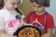 Сегодня в подготовительной группе "Дружба" прошёл "День Шарлотки". Дети участвовали в процессе приготовления шарлотки с яблоками.