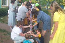 8 июля в России отмечается ни на что не похожий, очень душевный и глубокий по замыслу праздник – День семьи, любви и верности. Вот и в нашем детском саду прошёл праздник, посвященный Дню Семьи, Любви и Верности. Была организована трэвел-игра «Путешествие в страну сказок», в которой принимали участие дети и родители. Родители активно вместе с детьми участвовали в сказочных эстафетах. И в завершении игры родители с детьми нарисовали мелом на асфальте символ Дня семьи, любви и верности - красивые ромашки.