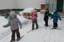 Сегодня дети очень старались познать азы лыжного спорта, надевали сами лыжи, застегивали крепления и координировали свои движения на лыжах. Все довольные и розовощекие, с восторгом возвращались в сад с прогулки.