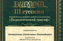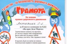 Поздравляем воспитателя Антюхину Светлану Леонидовну за 2 место в конкурсе по БДД "На приз Деда Мороза"! 23.01.2015