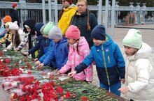 Сегодня, в преддверии 79 годовщины со дня Победы в Великой Отечественной войне дети возложили цветы к вечному огню.