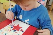 Рисование (нетрадиционная техника - трубочки) + аппликация во второй младшей группе на тему "Салют Победы". Воспитывать любовь, гордость и уважение к Родине и к её защитникам