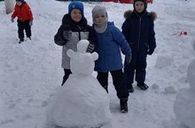 Он не мал и не велик, Снежно белый снеговик. У него морковкой нос, Очень любит он мороз.
