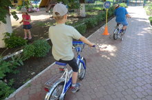 В рамках месячника "Внимание, дети!" был организован велопробег, где дети закрепляли знания о правилах езды на велосипеде.
