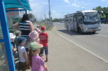 В рамках месячника "Внимание, дети!" была организована экскурсия на остановку, где дети закрепляли знания о правилах поведения на остановке, в транспорте, о правилах безопасного поведения на дороге.