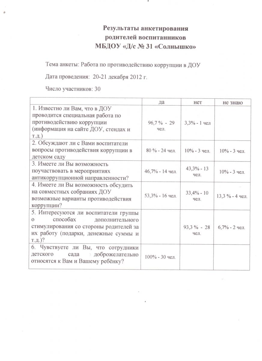 Результаты анкетирования родителей воспитанников 20-21 декабря 2012 г.