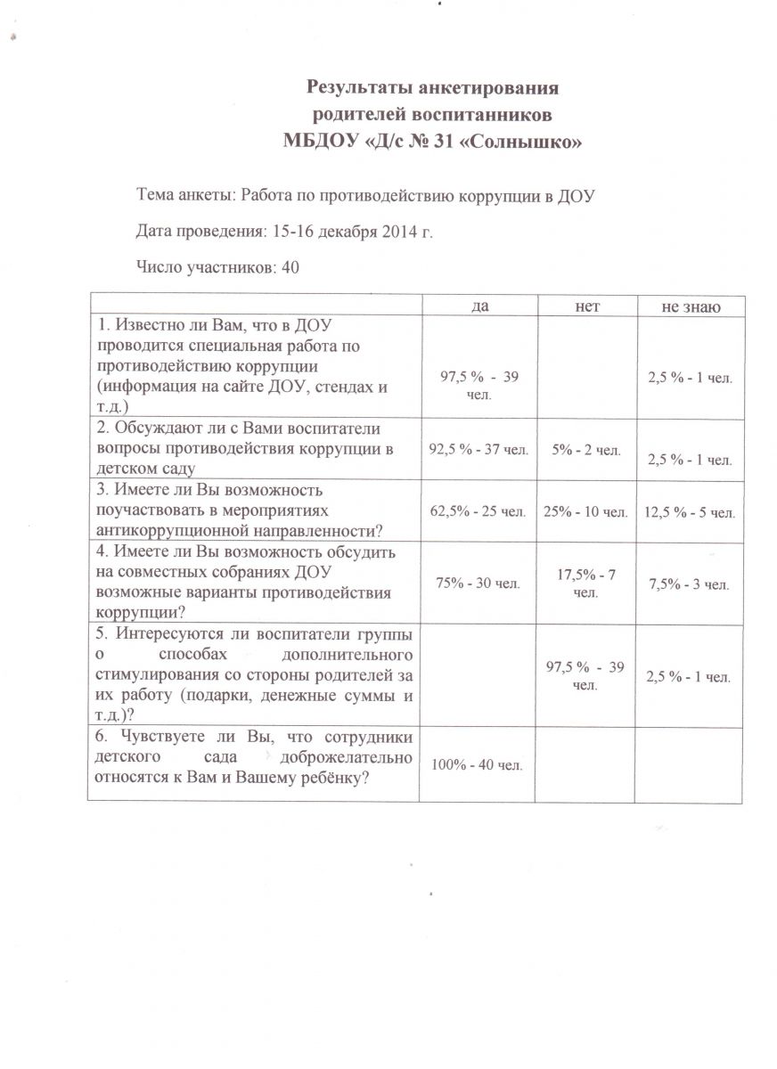 Результаты анкетирования родителей воспитанников 15-16 декабря 2014 г.