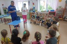 Сегодня в рамках Месячника безопасности совместно в группах "Веселые ребята" и "Капельки" прошла интересная и познавательная беседа у воспитанника группы "Веселые ребята" Гатауллина Раяна с папой Ильнуром Сереневичем, который работает фельдшером скорой медицинской помощи.