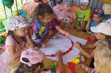 Ребята закрепили понятие "радуга". В ходе беседы учились высказывать свои впечатления о ней. Дети с удовольствием слушали рассказы о радуге "Откуда берётся радуга", " Где живёт радуга". Поиграли в игру "Солнце, земля и ветер". Сделали коллективную работу Радугу из бумаги и назвали её "Цветное лето".