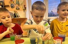 В младшей группе " Цыплята"был насыщенный день. К детишкам в гости прибегал зайчик, который провёл с ребятами весёлую зарядку. Также гостями были матрешки, красивые яркие куклы. С интересом дети рассмотрели их, поиграли. Потом нарисовали яблоки для угощения нашим гостям.