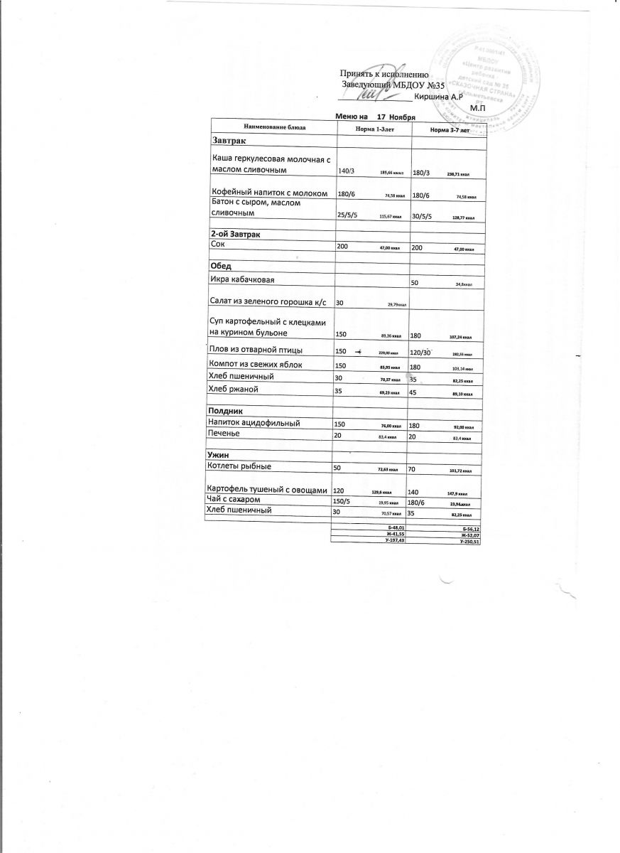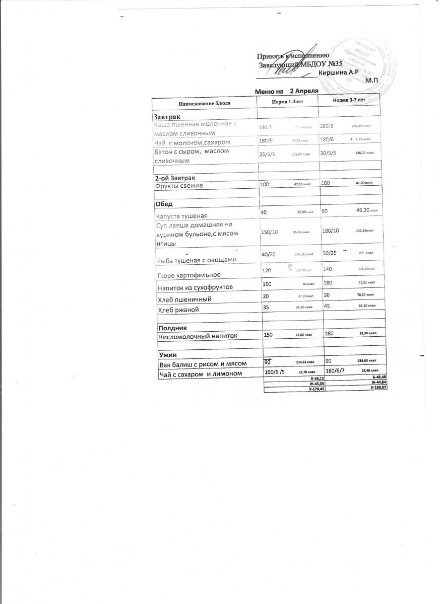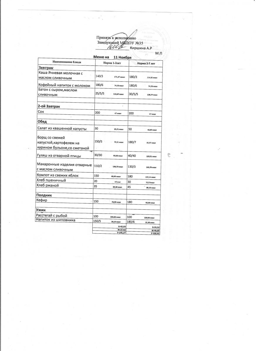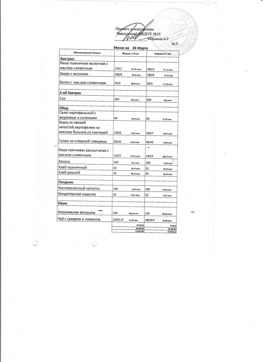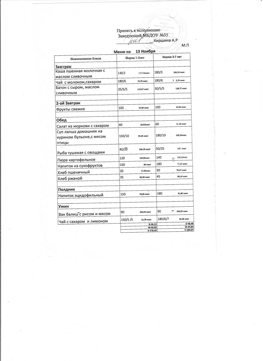 Диетическое питание в МБДОУ "ЦРР-д/с №35 "Сказочная страна" отсутствует