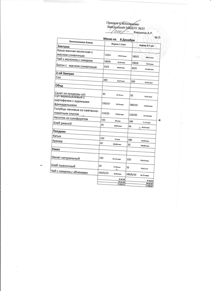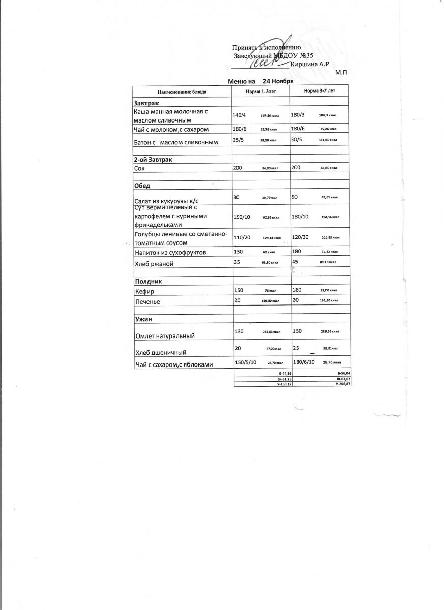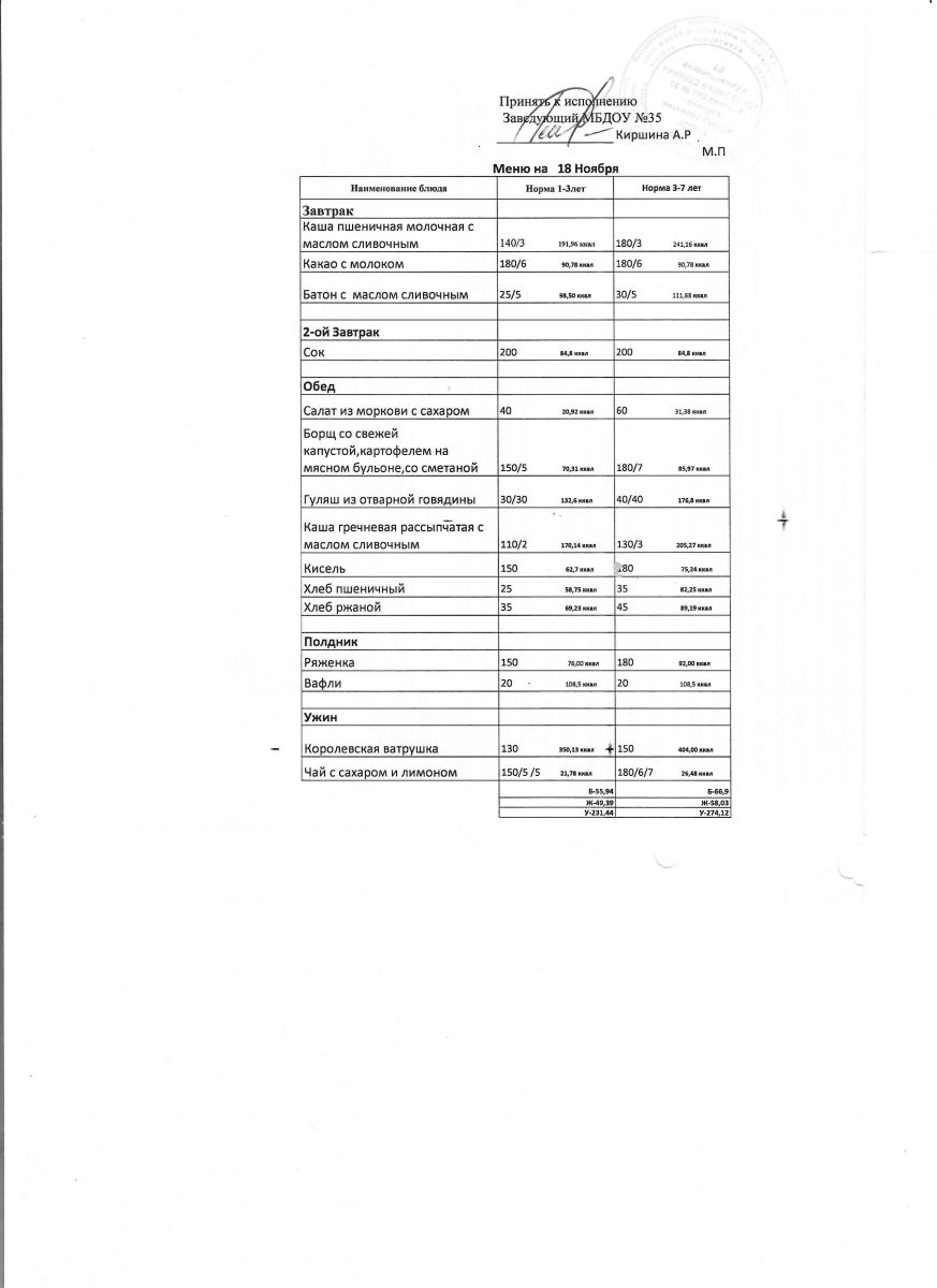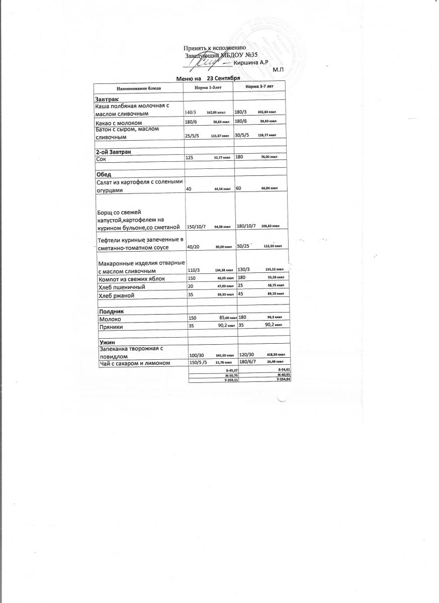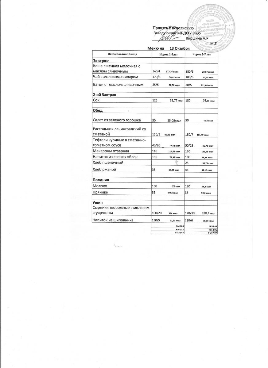 Диетическое питание в МБДОУ "ЦРР-д/с №35 "Сказочная страна" отсутствует