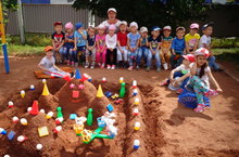 Забавная игра!16 августа в нашем ДОУ состоялся конкурс построек из песка "Песочные фантазии". В конкурсе приняли участие все возрастные группы детского сада. Целью конкурса являлось содействие развитию творчества детей и педагогов. На песочницах выросли замки, города, скульптуры животных. Фантазиям воспитателей и детей не было предела! Дети имели возможность полюбоваться постройками своих сверстников и послушать песочные истории. По мнению независимого жюри Гран При получила группа «Подсолнух», воспитатель Самойлова В.В., которые создали постройку «Волшебный дворец». Победители в номинациях: