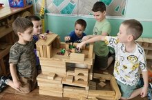 В старшей группе № 2 сегодня особенно шумно от стука деревянных кубиков. Ребята с головой погрузились в игру с деревянным конструктором!