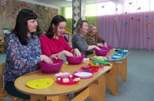 В рамках городской тематической недели "Специалист" по проблеме "Партнерские отношения детского сада и родителей" - воспитатель 1 кв.категории Сергеева Г.В. показала мастер - класс для родителей детей 1 младшей группы "Поиграем вместе с мамой".