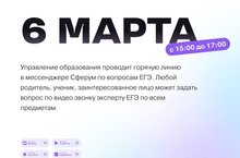 6 марта с 15:00 до 17:00 Управление образования проводит горячую линию в мессенджере «Сферум»!
