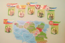 Яркий национальный магнитный стенд по УМК и НРК позволяет предоставлять информацию детям в более доступной наглядной форме. Дети с огромным интересом работают по УМК и НРК, как самостоятельно, так и с помощью педагога. На всех занятиях используется мультимедийное оборудование, где детям предоставляется возможность не только видеть работу педагога, но и самим поработать на компьютере. -