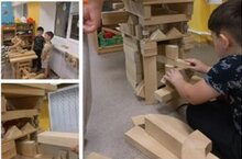 всю неделю ребята строили здание, дополняли разными деталями,переделывали. Дополнили на крыше летающий объект, пушку перед входом. На балконе даже появился тигр..значит так задуманное. Наблюдать было интересно. -