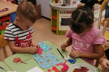 Дети группы №5 ,распределения по центрам , оформляют группу по теме недели «Полезные овощи и фрукты»