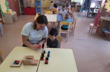 - Направление на развитие мелкой моторики, чувств: зрение, слух, вкус, обоняние и осязание. Мария Монтессори считала, что аккуратные действия с мелкими предметами формируют интеллект, развивают речь, внимание и память. Поэтому в её системе много деятельности, связанной с нанизыванием предметов, угадыванием их на ощупь и по фактуре, с сортировкой.