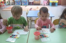 Рисование красками в 1 младшей группе #1 02.10.2015