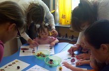 Занятие с использованием природного материала провела педагог-психолог Корчагина А.Р. с детьми адаптационных групп Мальки и Капельки. Дети собирали лото, сопоставляя изображения и природный материал (желуди, шишки, цветы, осенние листья, сухую траву),а в завершение занятия сделали аппликацию - клеили гриву льву из осенних листьев.