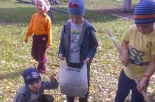 Воспользовавшись прекрасной осенней погодой мы с детьми провели субботник на своем участке "под липой".