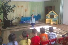 2 сентября 2015 года педагог-психолог Корчагина А.Р. провела первое занятие театрального кружка "Любимые сказки", где дети познакомились с видами театра (настольный, перчаточный, теневой, на фланелеграфе) и некоторыми профессиями (артист, кукловод). Дети узнали о первоначальных творческих проявлениях в музыкально-игровой деятельности: мимике, голосе, жестах, пантомимике, смогли использовать полученные знания в творчестве, обыграли этюды.
