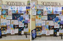 В детском саду ко дню космонавтики организована яркая выставка рисунков "Вперёд в космос "