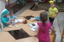 Группа "Звездочки" 18.10.2018 Во 2 мл. группе "Звездочки" в режимных моментах проводилась сюжетно-ролевая игра "Больница", где дети принимали активное участие. Учились использовать предметы-заместители, пытались распределить роли.