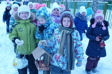 Кормушки для птиц 07.12.2017 Вот и пришла зима. Перелетные птицы давно улетели, а синички остались. Наши детки с помощью родителей изготовили кормушки и повесили на территории детского сада. Теперь каждый день выходя на прогулку они будут кормить птиц.