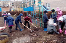 Формы работы с детьми, организованные утром были посвящены Всемирному дню Земли. На прогулке дети подготовительной к школе группы с воспитателем Биктемировой А.Т. показали свое отношение к Земле через труд.