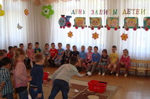 День защиты детей 02.06.2017 С утра 01.06.17 каждый сотрудник ДОУ поздравил детей с праздником – Днем защиты детей. Одна из дошкольниц (Азалия, 2 мл гр.) дала свою интерпретацию празднику «Это – День Победы детей!». В течение дня детей и с их непосредственном участием были проведены разнообразные развлекательные мероприятия: литературная викторина по сказкам, инсценирование сказок, интеллектуальная викторина и др. Ведущим мероприятием стал праздник, содержащий подвижные игры и эстафеты, конкурс художников, игра «Угадай мелодию». В каждой возрастной группе в разных организационных формах, используя разнообразные методы, и средства обучения и воспитания, имела место трактовка прав защиты детей.