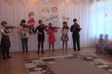 В рамках сотрудничества ДОУ с образовательными учреждениями дополнительного образования, в МБДОУ № 48 прошла очередная встреча с учащимися музыкальной школы № 2 г. Альметьевска. Концерт включал исполнение музыкальных произведений на скрипках, баяне, флейте, фортепиано, гитаре и вокальные номера. Дети проявили особый интерес к флейте, как к инструменту принцесс, к баяну и гитаре.