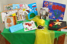 Участие МБДОУ в акции "Война глазами детей". Были представлены детские рисунки и поделки воспитанников.
