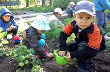 Сегодня дети старшей группы трудились в огороде