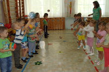 Для детей второй младшей и средней групп был проведён физкультурный досуг "Мой весёлый звонкий мяч"