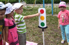 Образовательная деятельность с детьми 1 младшей группы "Три сигнала светофора" / 1-нче теркемендэ юл йору кагыйдэлэрен ойрэну буенча шогыль "Светофорнын оч сигналы" 28.05.2014