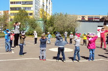 Физкультурное занятие на воздухе в 9 группе проводит инструктор по ФИЗО Герасимова О.П.