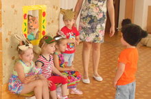 Во время путешествия дети встретили сказочных героев, вспомнили их имена, из каких они сказок, затем юные актеры инсценировали сказку «Репка».
