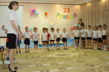 18 февраля в логопедической группе АБВГдейка и в старшей группе №3 "Цветик - семицветик" прошло мероприятие ко Дню Защитника Отечества. В музыкальном зале без опоздания собрались приглашенные гости-папы, дедушки, старшие братья, а также группа поддержки в лице мам. Гости не скучали, ведь папам пришлось показать свою силу, ловкость, быстроту и бесстрашие в различных конкурсах и эстафетах. Мамочки состязались в умении одаривать сильную половину комплиментами. Ну а дети веселились от души. Замечательная получилась встреча! Победила, как всегда, дружба. Глядя на счастливые лица детей и взрослых, хочется сказать словами из песни: «Как здорово, что все мы здесь сегодня собрались!»