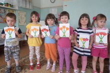 Занятие по аппликации во второй младшей группе №2, приобщенное ко дню 8 марта 06.03.2015