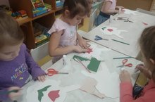 Привлечение детей к татарскому народному творчеству в старшей группе №12 проходит через приобщение к изобразительному искусству. Дети расписывают разными элементами мужской татарский национальный убор - тюбетейку. Путем знакомства с национальными орнаментами идет приобщение детей к творчеству татарского народа.