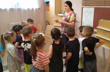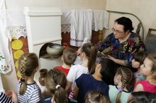Воспитанники подготовительной группы №4 побывали в мини-музее нашего детского сада . Им предоставилась возможность воочию увидеть предметы старины, которые использовались в быту в те далёкие, старинные времена. Ребята окунулись в мир, где ели исключительно из деревянной посуды, еду готовили в чугунке в русской печи, младенцев укачивали в люльке, а избы украшали вышитыми вручную занавесками и скатертями