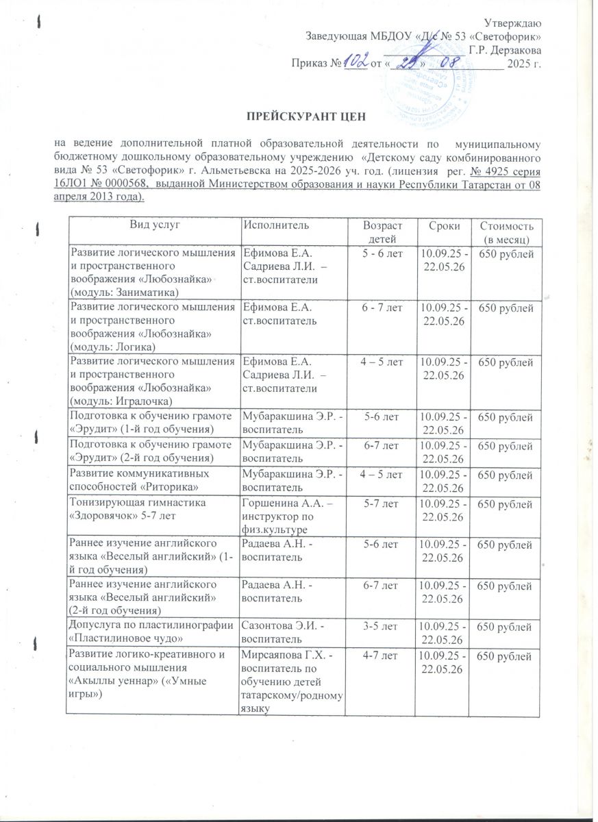 - Об утверждении предельной стоимости на платные услуги, оказываемые населению на 2025-2026 уч.г. (Постановление №2423 от 03.10.2025 г.)