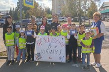Сегодня воспитанники МБДОУ №56 "Крепыш" АМР РТ совместно с начальником отдела профилактики территориального управления ГБУ БДД в г.Альметьевск Рафигуллиной Л.М. и главным специалистом управления по взаимодействию с правоохранительными органами исполнительного комитета по АМР Юнусовой Ф.Ф. в рамках проведения республиканского профилактического мероприятия "Внимание, дети!" провели акцию "Безопасно - в школу".