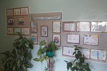 В фойе МБДОУ № 56 "Крепыш" семьи воспитаников встречает выставка рисунков "Бабушка рядышком с дедушкой".